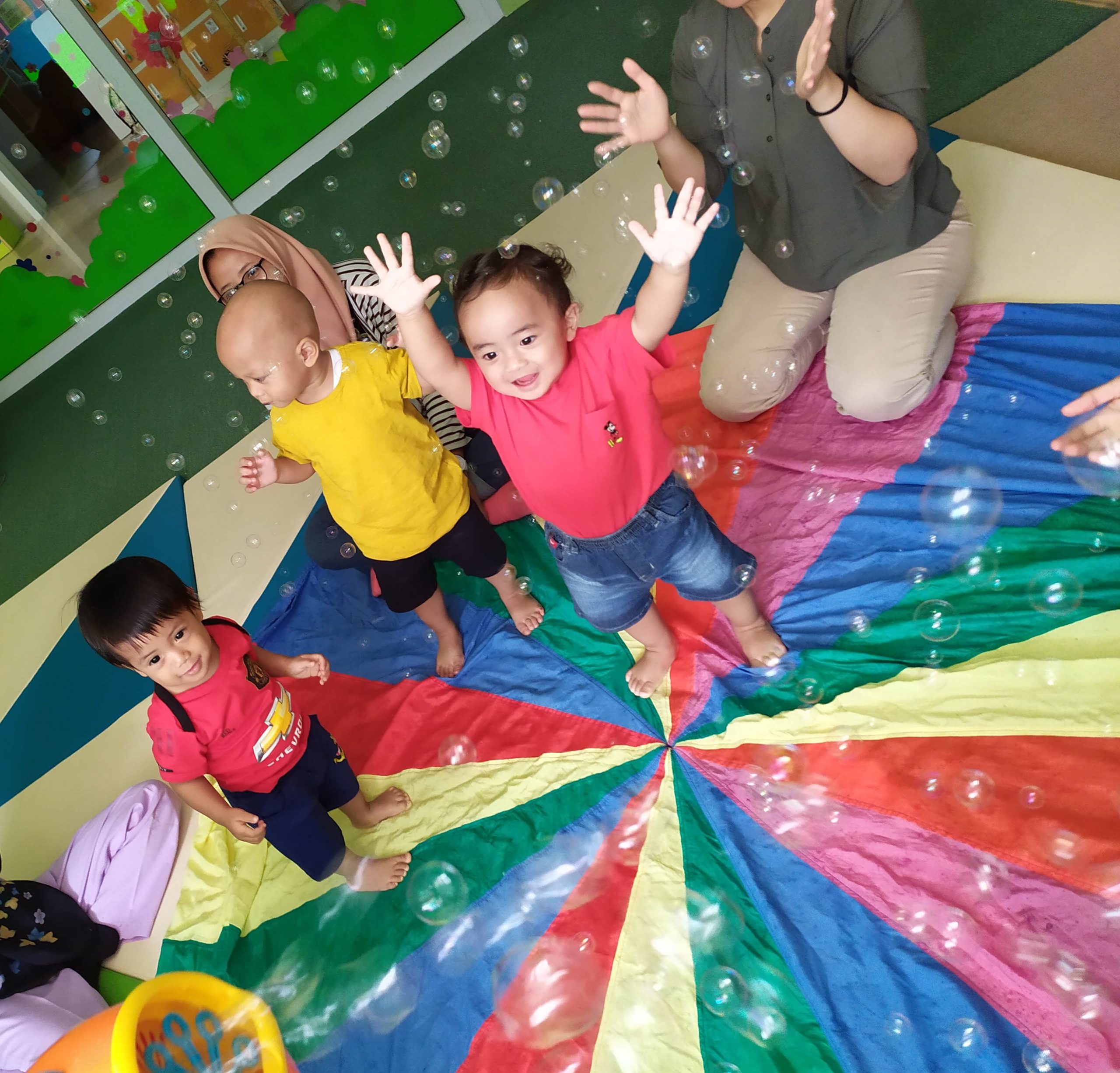 A class full of gentle stimulation designed to optimize baby’s budding gross motoric, sensorial & language skill. Also a wonderful bonding time for parents & baby.